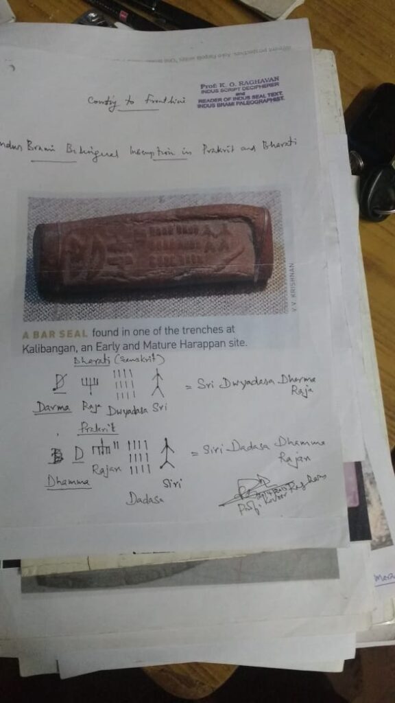 Iam professor Kovoor Raghavan, decipherer of Indus Brami script and reader of Indus seal text (Burjapetra) and Indus Brami paleographist.